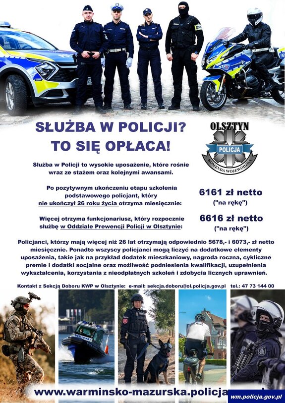 Informujemy o rozpoczęciu procedury doboru kandydatów ubiegających się o przyjęcie do służby w Policji na terenie województwa warmińsko-mazurskiego