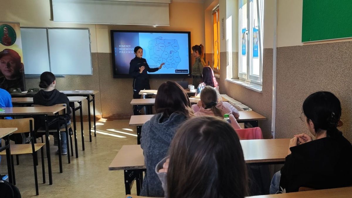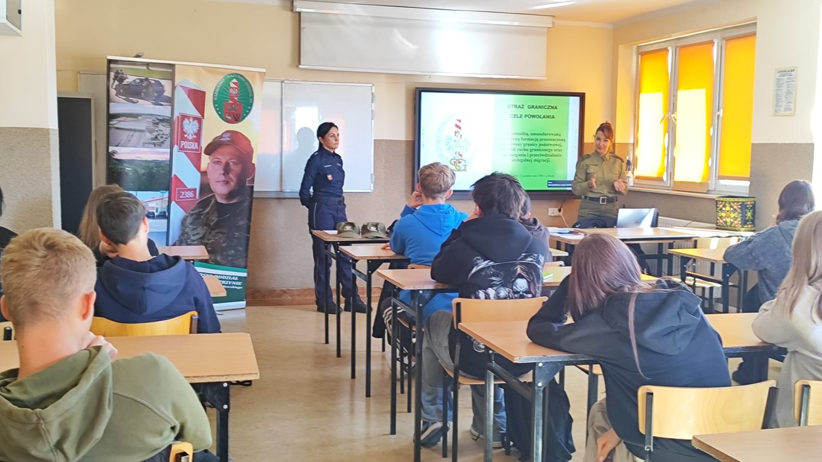 Funkcjonariuszki Policji i Straży Granicznej na lekcji w oddziale mundurowym