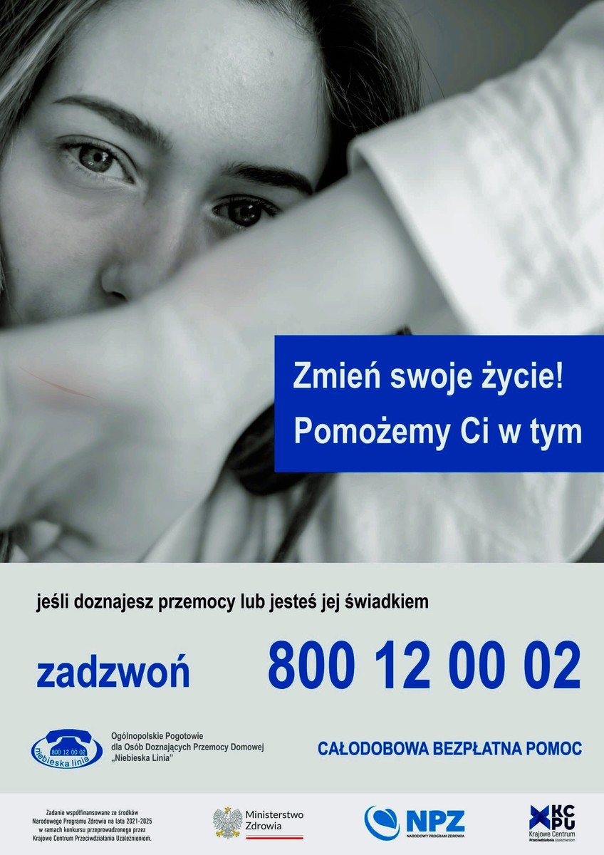 Przemoc domowa to problem, który wciąż dotyka wiele osób. Ważne jest, aby wiedzieć, że nikt nie musi z tym zostawać sam. Przypominamy o działalności Ogólnopolskiego Pogotowia "Niebieska Linia" dla osób doznających przemocy domowej i ich bliskich: