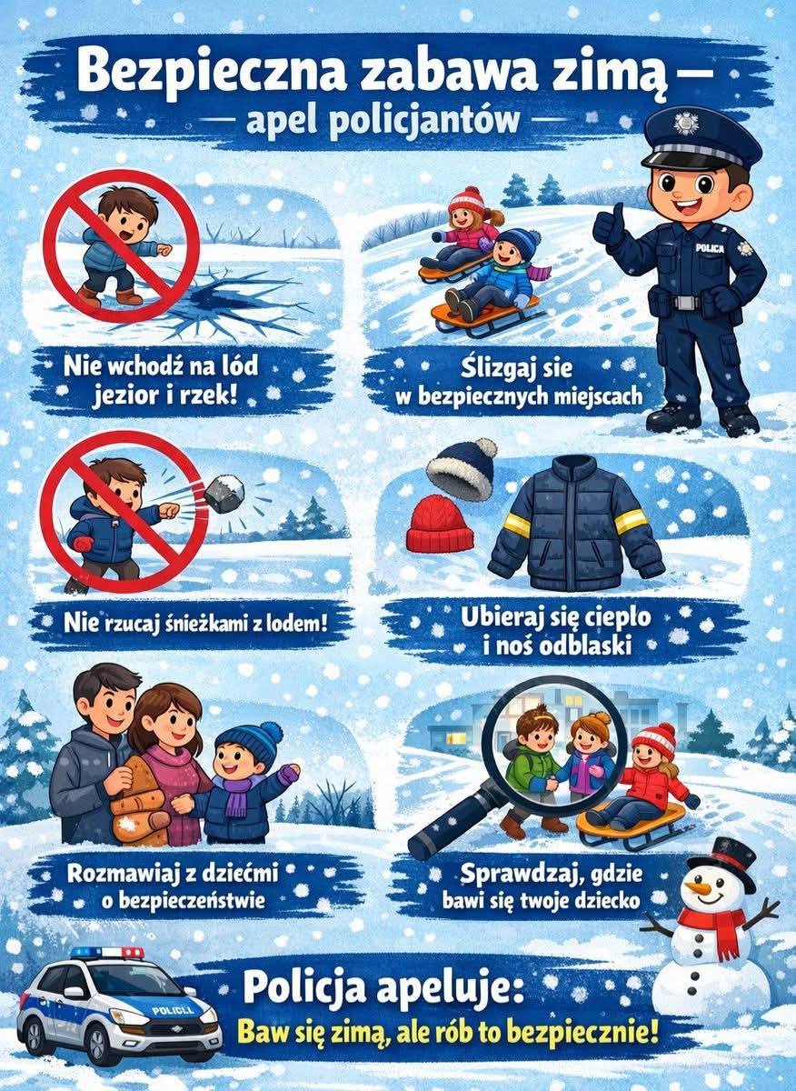 Brak właściwej opieki ze strony rodziców, opiekunów i organizatorów zimowego wypoczynku może być przyczyną wielu tragicznych wypadków, a także przestępstw i wykroczeń popełnianych przez dzieci i młodzież lub na ich szkodę.