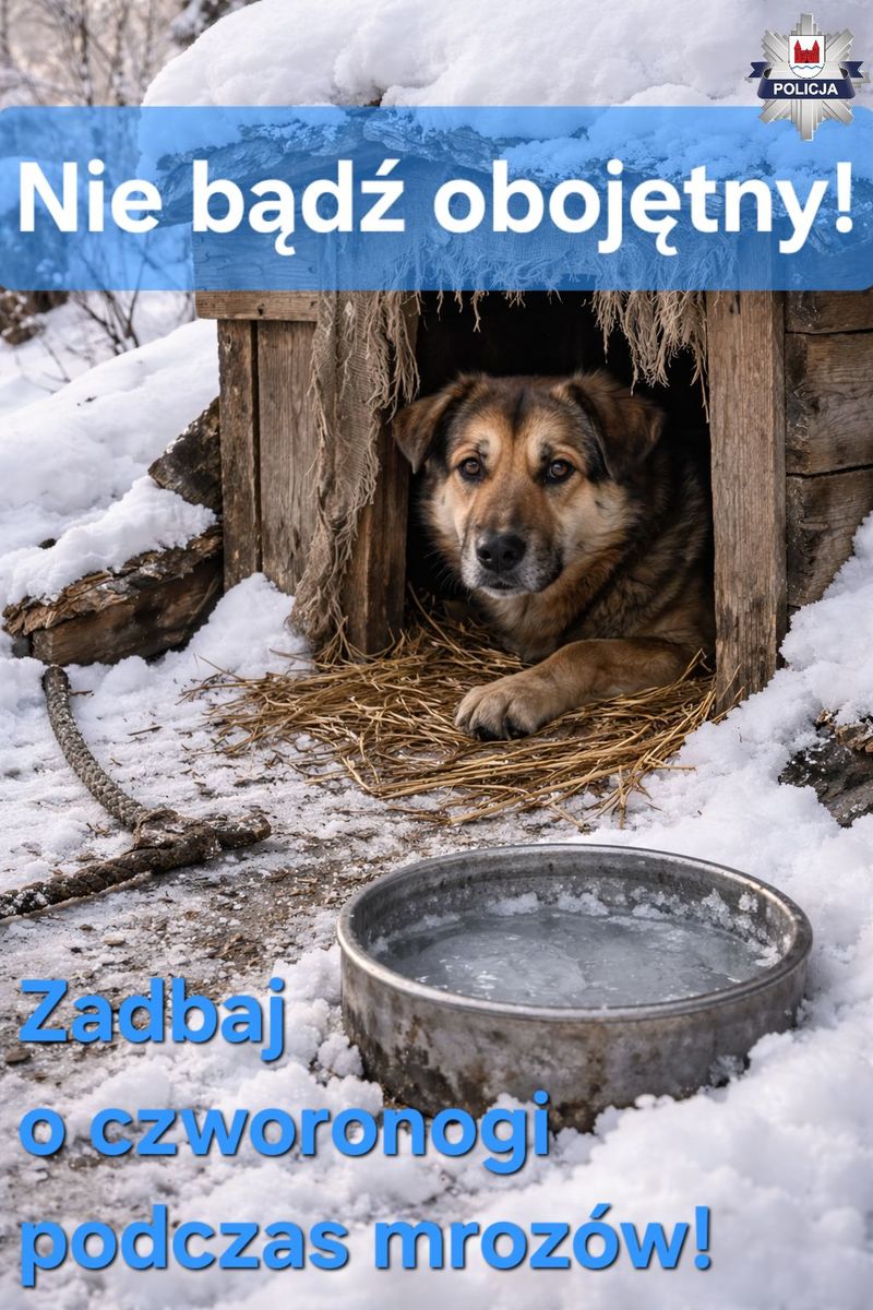 Zwierzęta to nie rzeczy, to istoty żywe, które odczuwają strach, ból, cierpienie, a zima to czas, w którym uważność i empatia mają szczególne znaczenie. Śnieg, mroźne noce i chłodniejsze dni mogą stanowić poważne wyzwanie dla zwierząt, zwłaszcza tych, które spędzają dużo czasu na zewnątrz. Jako policja apelujemy: nie zapominajmy o naszych czworonożnych towarzyszach – one także potrzebują naszej pomocy, aby przetrwać trudne warunki zimowe.
