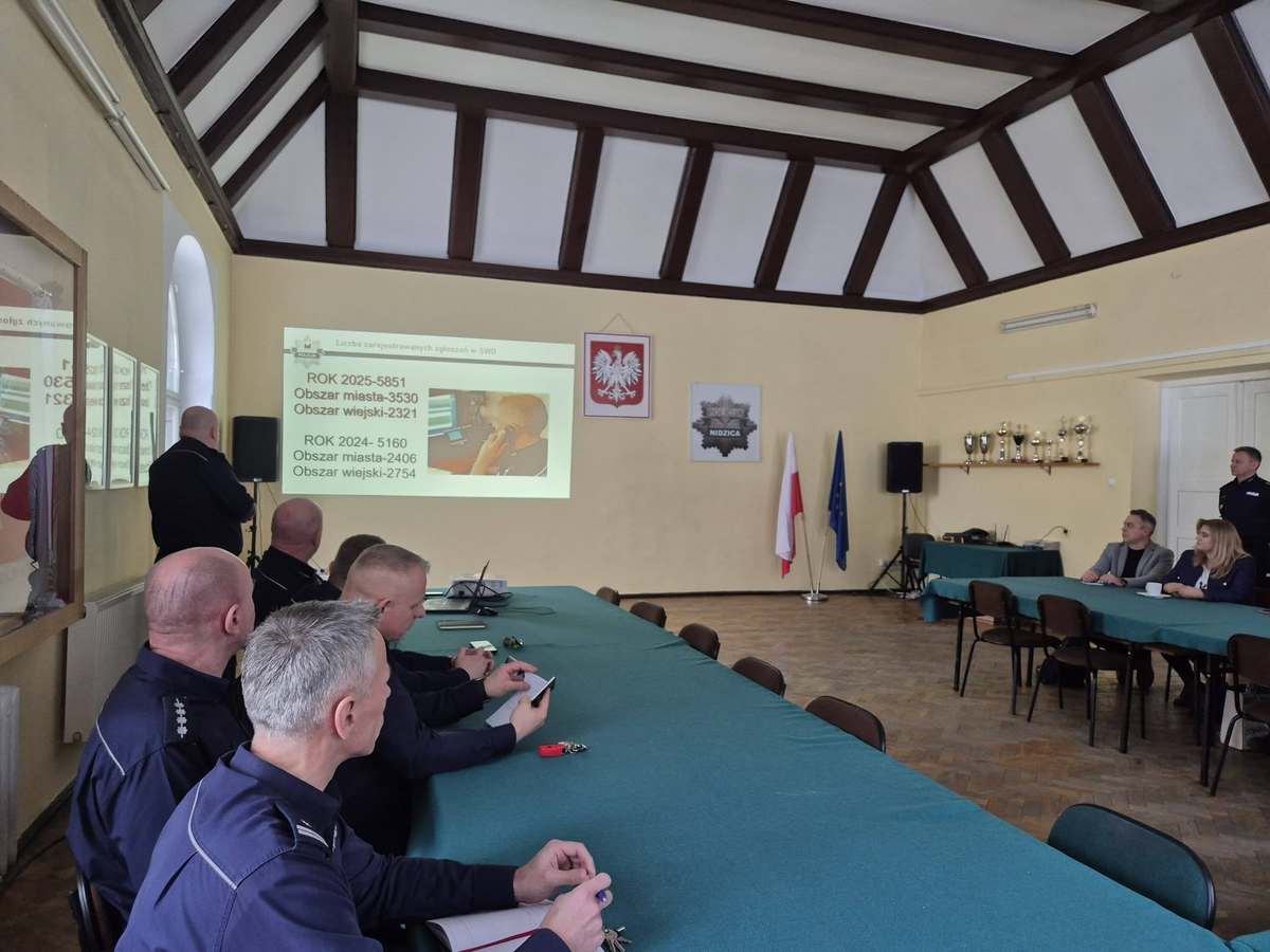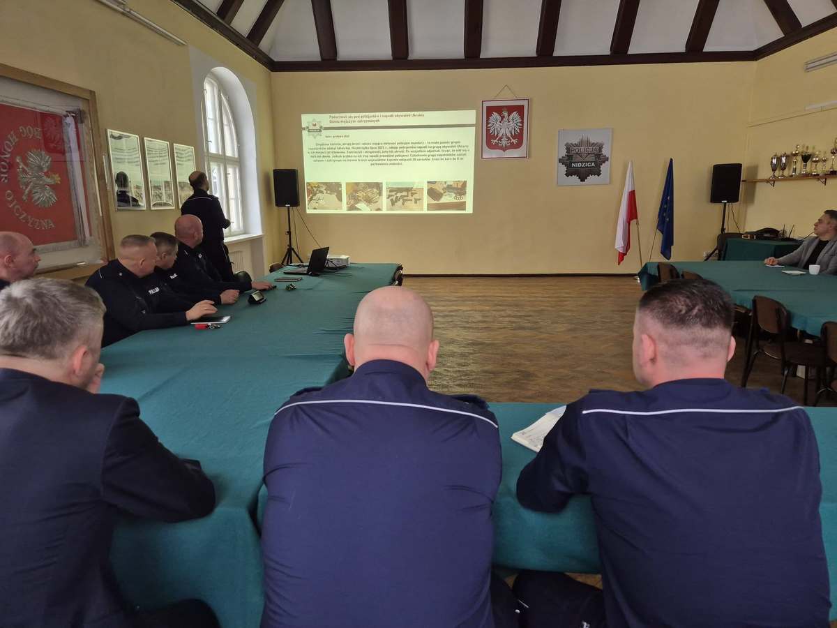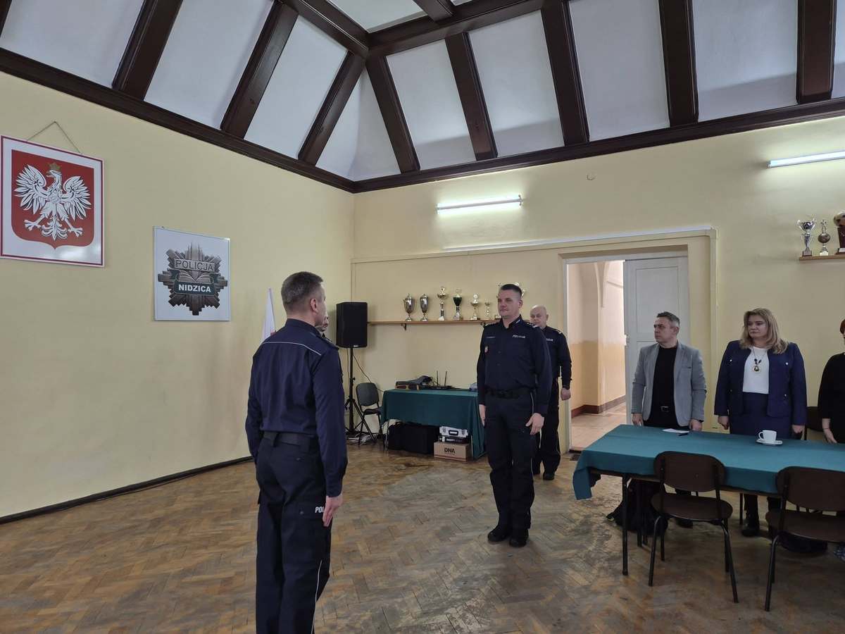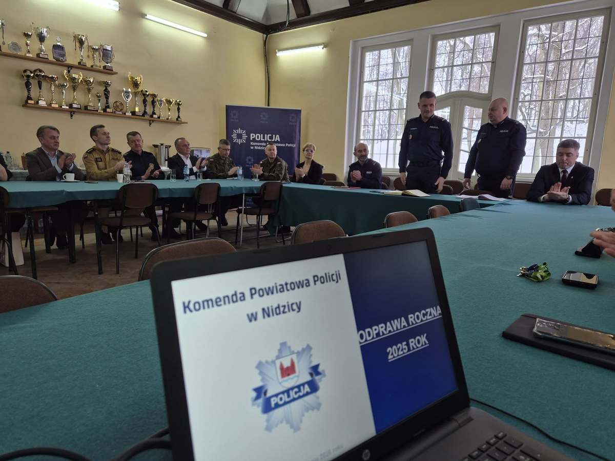 W poniedziałek (26.01.2026 r.) w sali auli Komendy Powiatowej Policji w Nidzicy odbyła się odprawa roczna podsumowująca działania nidzickiej policji w 2025 roku. W odprawie, którą poprowadził komendant nidzickiej jednostki mł. insp. Tomasz Kamiński, uczestniczył insp. Radosław Drach - Zastępca Komendanta Wojewódzkiego Policji w Olsztynie. Udział w niej wzięła również kadra kierownicza tutejszej jednostki Policji, przedstawiciele samorządów, służb mundurowych oraz instytucji.