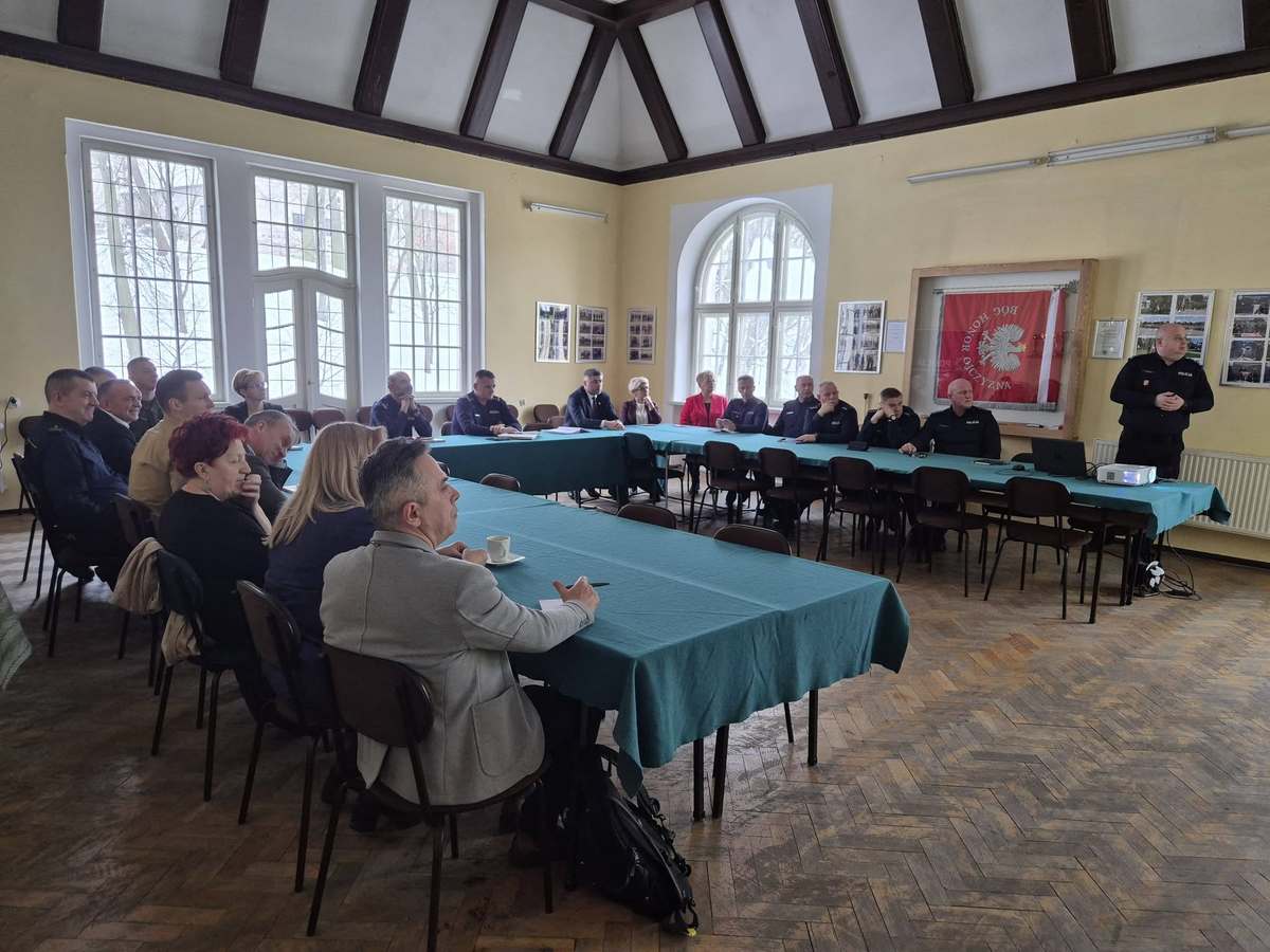 Po oficjalnym przywitaniu gości komendant omówił aktualną sytuację kadrową jednostki. Następnie podziękował policjantom, przedstawicielom samorządów terytorialnych za rok ciężkiej pracy, która przełożyła się na poprawę bezpieczeństwa mieszkańców naszego powiatu. Podkreślał jak ważna jest współpraca pomiędzy służbami a samorządami, która ma bezpośredni wpływ na osiągnięcie wspólnego celu, którym jest zapewnienie wysokiego poziomu porządku i bezpieczeństwa publicznego.