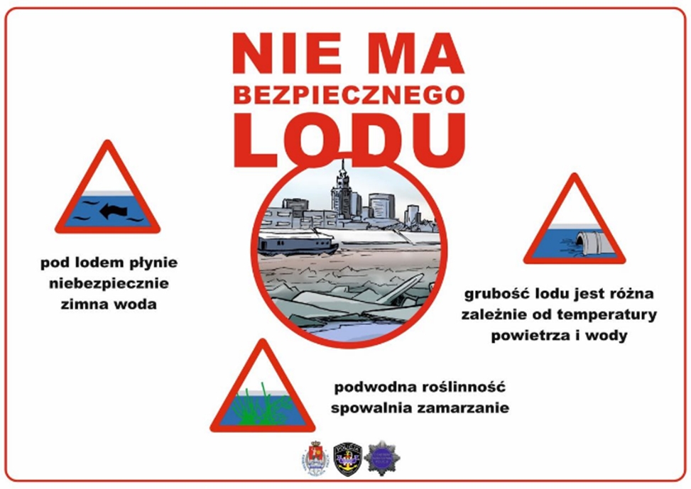 Zima za oknem to doskonała okazja dla dzieci i młodzieży, by korzystać z jej uroków. Niskie temperatury powodują zamarzanie rzek, jezior i wszelkich zbiorników wodnych. Pamiętajmy, że wchodzenie na zamarzniętą taflę wody zawsze jest bardzo ryzykowne. Lód ulega ciągłym zmianom, również dobowym i nigdy nie ma tej samej grubości na całym zbiorniku. Należy pamiętać, że wraz ze wzrostem temperatury powietrza, spada również wytrzymałość lodu. Pozornie dobrze wyglądający lód w rzeczywistości może być za słaby, aby utrzymać ciężar ludzkiego ciała. Poruszanie się po lodzie bez odpowiedniej wiedzy i sprzętu asekuracyjnego może zakończyć się tragicznie, szczególnie dla dzieci, dlatego uczulmy je na niebezpieczeństwo, jakie niesie ze sobą zabawa na zamarzniętych zbiornikach wodnych. Kontrolujmy najmłodszych, gdzie i jak się bawią. Sprawdźmy, czy w razie potrzeby będą umiały wezwać pomoc. Uczmy je przewidywania i unikania sytuacji zagrażających życiu i zdrowiu.
