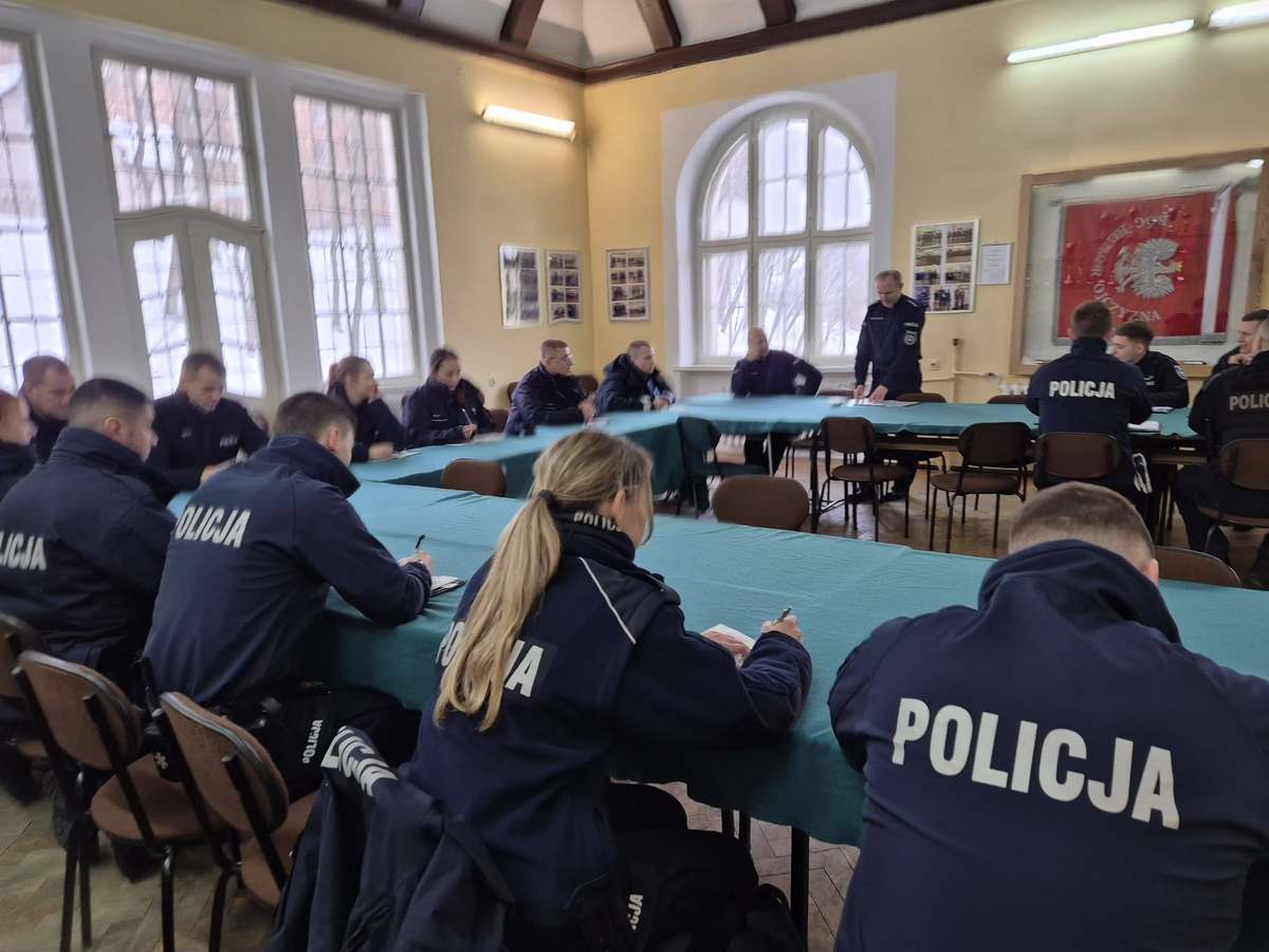 W środę (04.02.2026 r.) młodzi policjanci z Akademii Policji w Szczytnie pod okiem doświadczonych nidzickich funkcjonariuszy zdobywali niezbędną wiedzę i dbali o bezpieczeństwo mieszkańców powiatu nidzickiego. Służbę w Komendzie Powiatowej Policji w Nidzicy rozpoczęła odprawa, podczas której patrolom przydzielony został rejon służbowy. Kursanci w trakcie odbywania praktyk uczą się jak wygląda codzienna służba, mają możliwość zweryfikować swoje wyobrażenie o niej i zapoznać się z jej specyfiką.