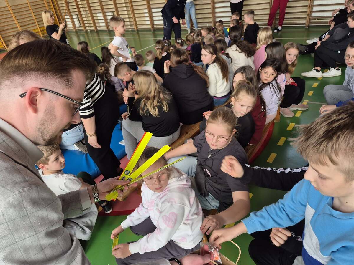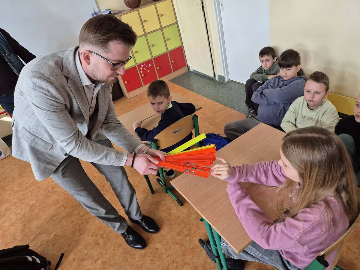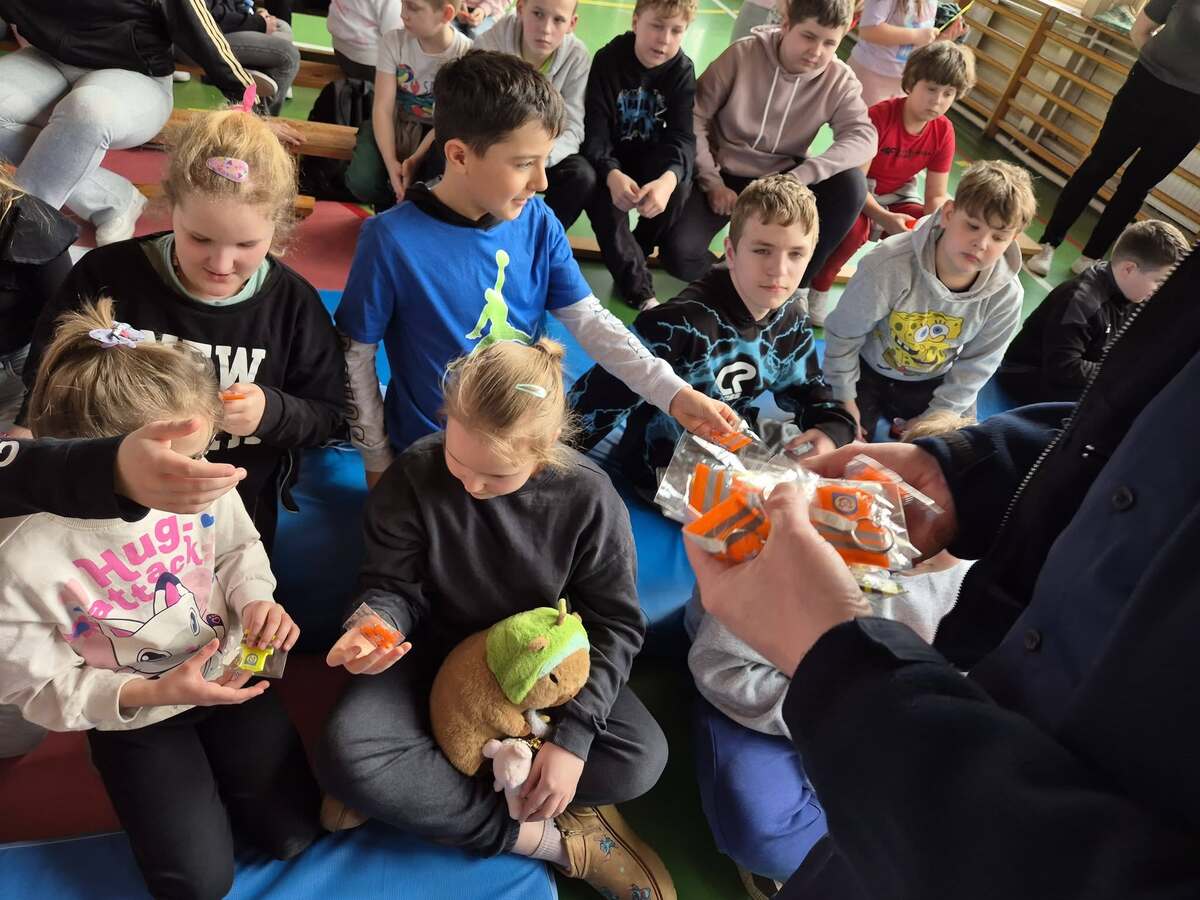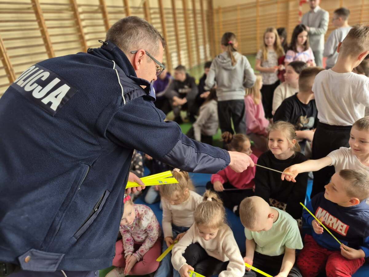 Na koniec, by uczniowie mogli świecić przykładem, rozdano elementy odblaskowe zakupione przez Gminę Janowo.