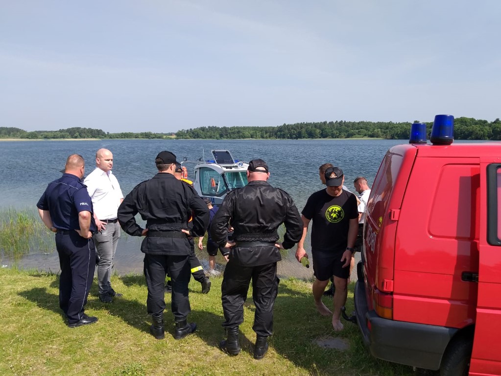 Dzisiaj (11.06.2019r.) od godzin porannych zostały wznowione poszukiwania. Nidziccy policjanci przy wsparciu przez funkcjonariuszy z Komendy Miejskiej Policji w Olsztynie, a także strażaków z Państwowej Straży Pożarnej z Nidzicy i Olsztyna wyposażonych w łodzie motorowe i sonar, wspólnie przeszukują miejsce zdarzenia oraz linię brzegową jeziora.